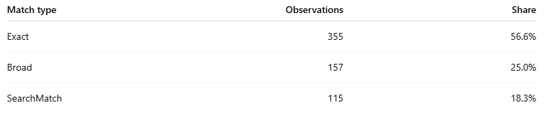 What the match-type mix looks like in aggregate