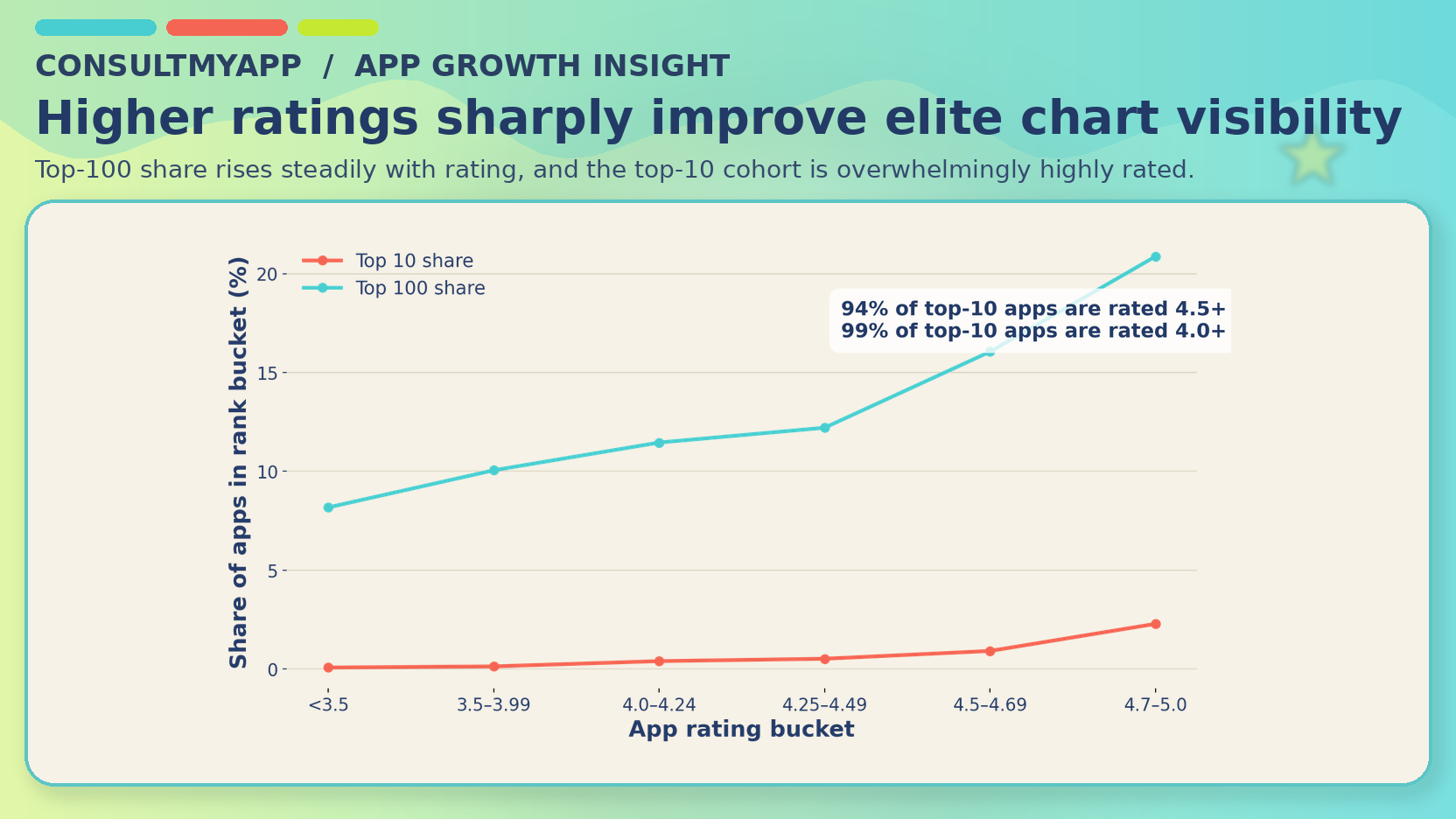 The important point is not that rating is the only growth driver. Rankings are shaped by brand strength, installs, conversion, retention, monetisation, merchandising and seasonality. But the data does suggest that ratings behave like a gate at the top end of the chart. In practical terms, low ratings rarely coexist with elite positions. And once a rating improves, the upside shows up in three places.